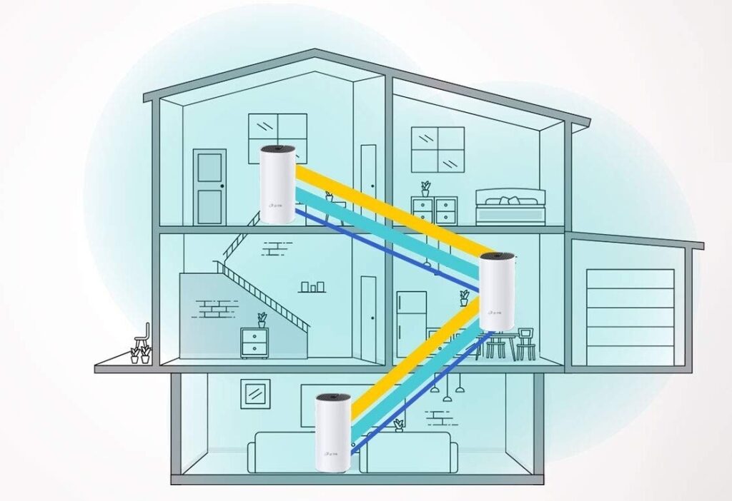 Los dispositivos en una red Mesh están conectados a un router principal, el cual se encarga de administrar el tráfico a través de la red. Estos dispositivos se conectan entre sí a través de una conexión inalámbrica de punto a punto (PTP), lo que permite que la señal WiFi se extienda a través de la red de forma uniforme. Esta conexión inalámbrica entre los dispositivos puede ser tanto una conexión de banda ancha, como una conexión de banda estrecha. Esto significa que los dispositivos Mesh pueden proporcionar una conexión de red fiable a aquellos dispositivos conectados a los dispositivos Mesh, incluso si estos dispositivos están a una distancia considerable del router principal.